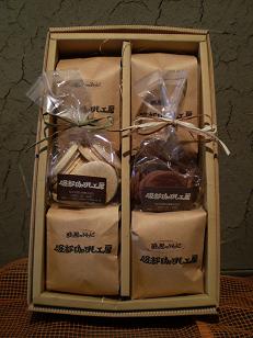 ブレンドコーヒーとクッキーの詰合せ 香りのためのプレンド 150g×2 酸と酷のブレンド 150g×2 アーモンドクッキー 1つ ココアクッキー 1つ 4,100 円+税 |